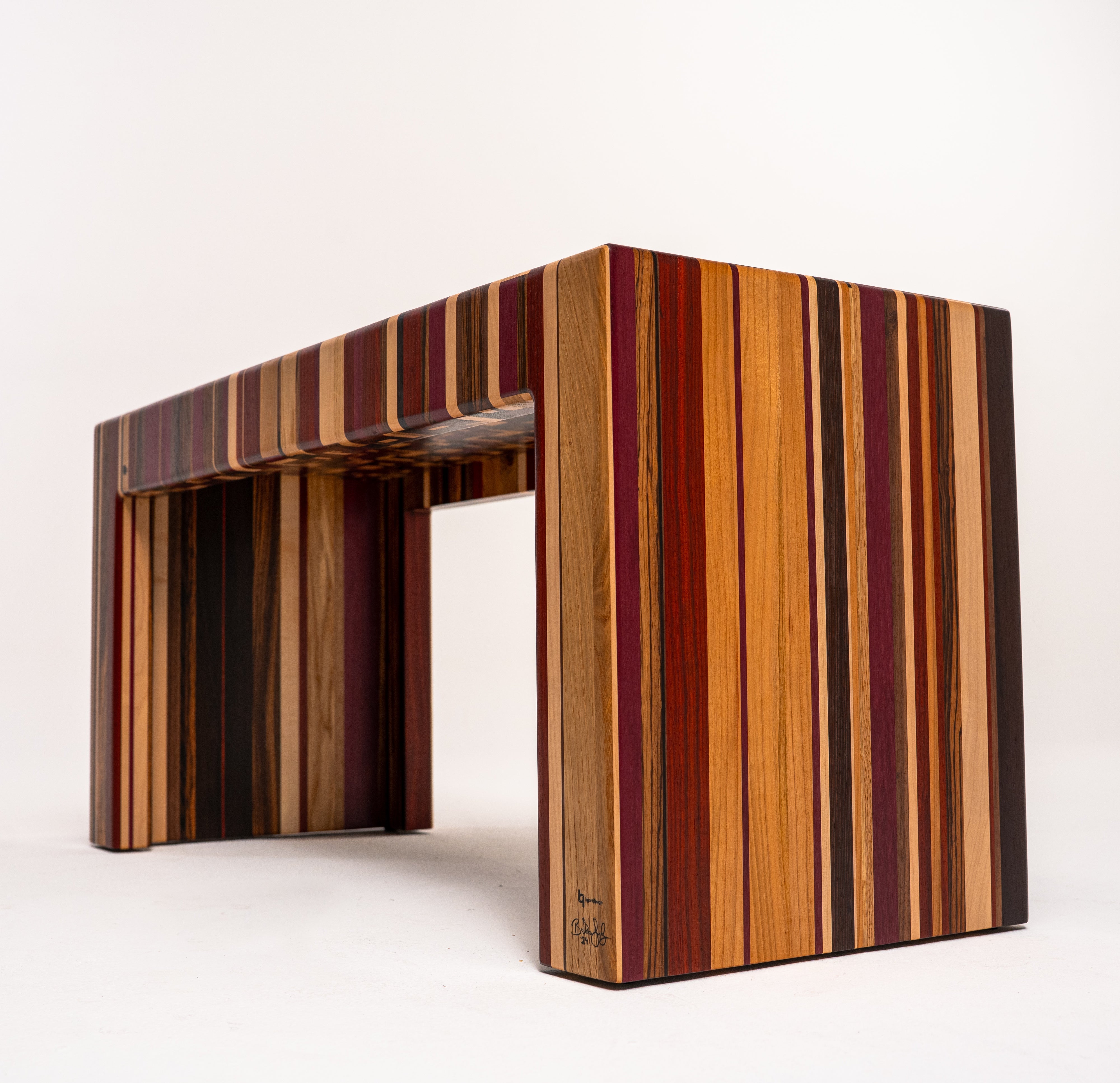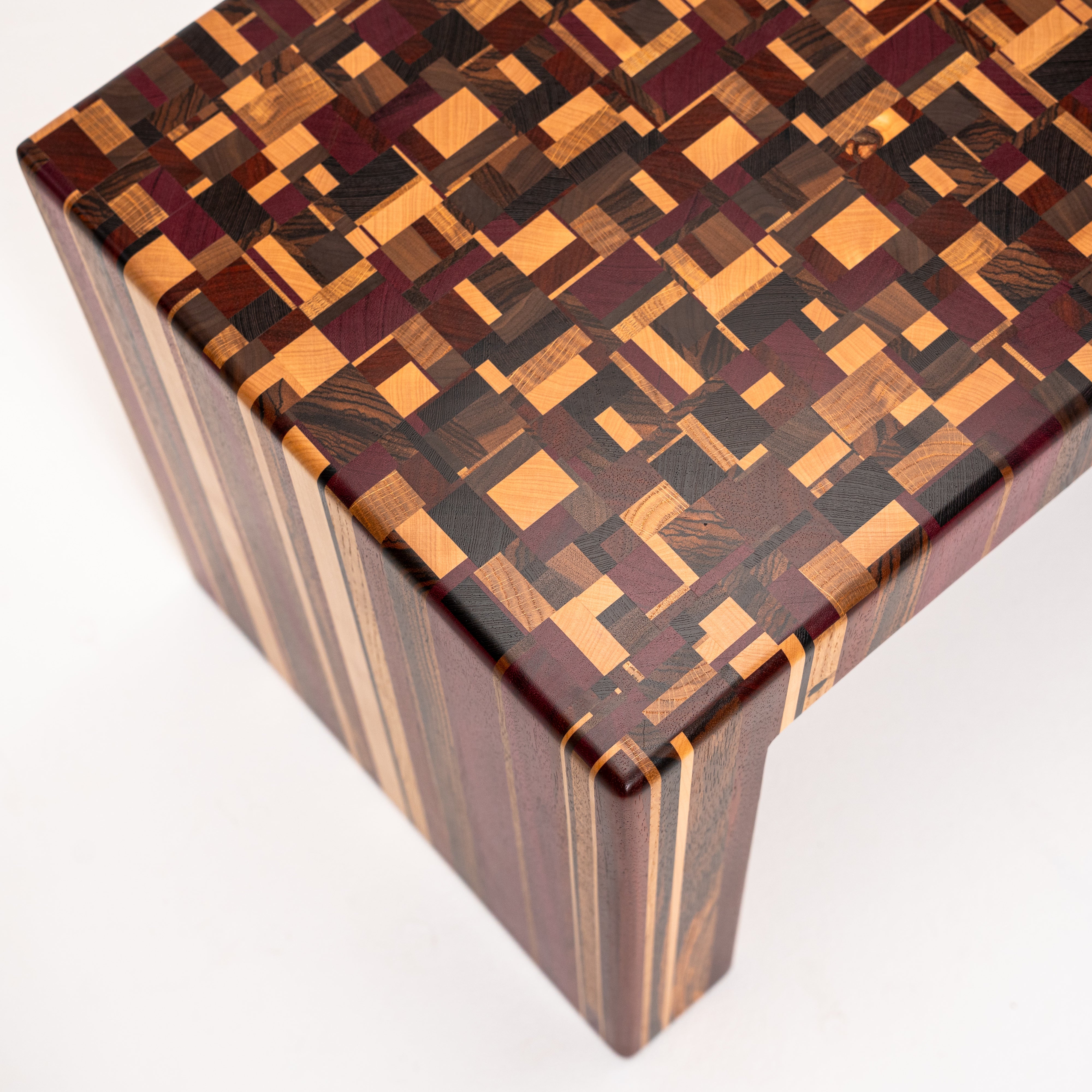 Egy igazán extravagáns, egyedi megjelenésű, kézzel készült tömörfa dohányzóasztal, amely 7 féle fafaj kavalkádjából formálódott tökéletessé.